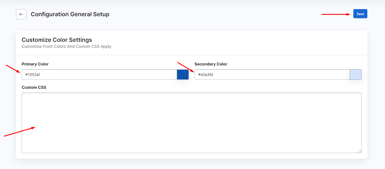 Firstly, you can change the Primary Color and Secondary Color from Configuration Option.